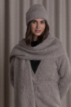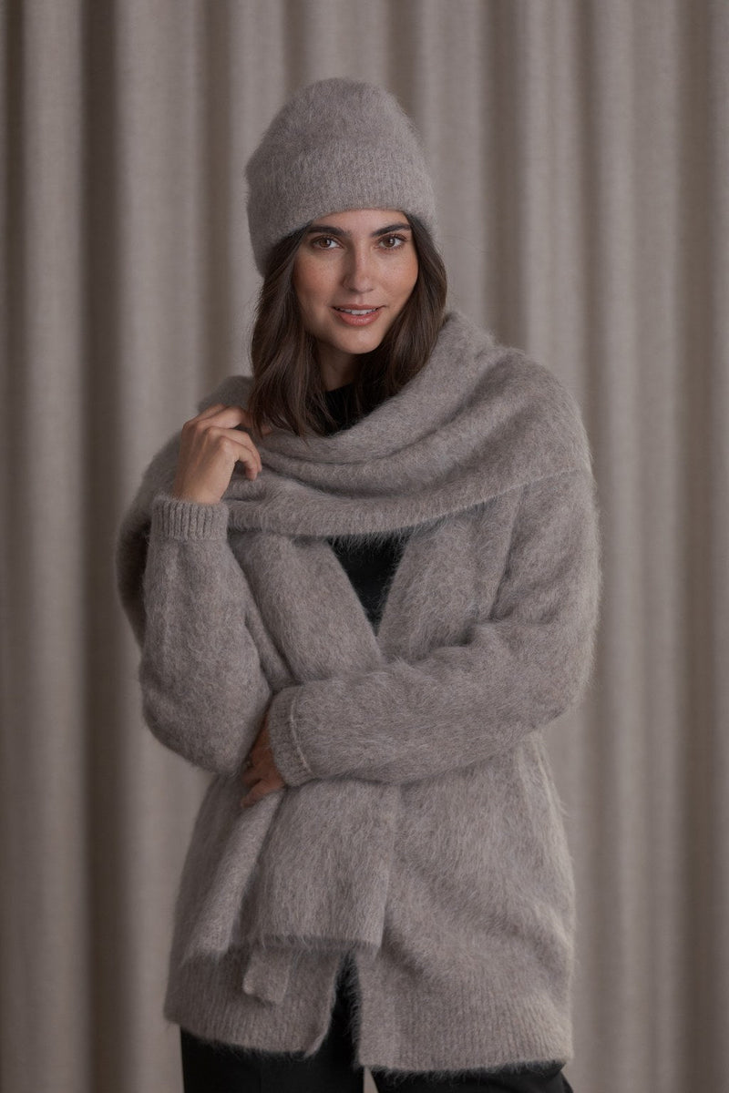 Pörröinen Ally alpakkapipo on valmistettu ylellisen pehmeästä ja lämpimästä alpakkasekoitteesta, joka tuntuu miellyttävältä ihoa vasten. Leveä joustinneulosresori antaa pipolle ryhdikkään ilmeen ja sen korkeutta voi säätää helposti resoria kääntämällä. Monikäyttöinen pipo sopii harmonisesti yhteen alpakkasekoitehuivien kanssa, luoden yhtenäisen ja tyylikkään kokonaisuuden.