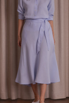 Klassinen leveähelmainen Liana-pellavahame, jossa on irroitettava vyö. Joustava kuminauhavyötärö hameen takaosassa sekä taskut, jotka lisäävät käyttömukavuutta. Hame on valmistettu 100 % eurooppalaisesta pellavasta, joten se tuntuu miellyttävältä iholla ja hengittää luonnollisesti. Hame on midimittainen.
