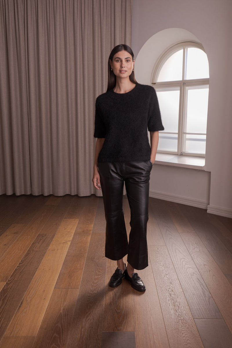 Lyhythihainen malli tekee tästä neuleesta erityisen monikäyttöisen ja se on helppo yhdistää erilaisiin asukokonaisuuksiin, olipa kyseessä rento arkipäivä tai hieman juhlavampi tilaisuus.