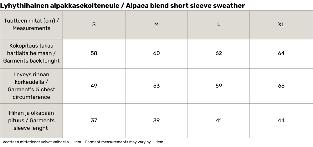 Lyhythihainen malli tekee tästä neuleesta erityisen monikäyttöisen ja se on helppo yhdistää erilaisiin asukokonaisuuksiin, olipa kyseessä rento arkipäivä tai hieman juhlavampi tilaisuus.