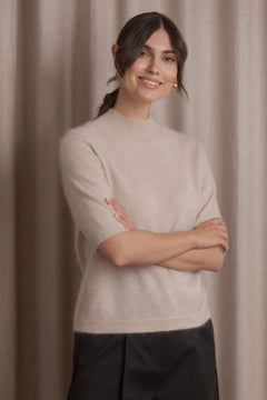 Karliea-neule on ajaton ja monikäyttöinen valinta, joka on valmistettu pehmeästä ja laadukkaasta 100 % kashmirista. Lyhythihainen malli puolipoolokauluksella tuo neuleeseen modernia ilmettä, ja istutettu hihalinja antaa ryhdikkään sekä kauniisti istuvan siluetin.