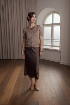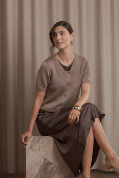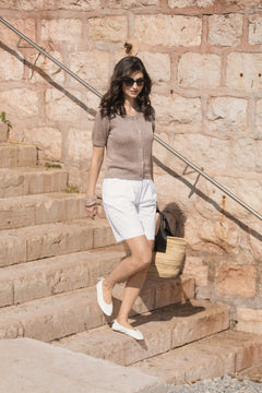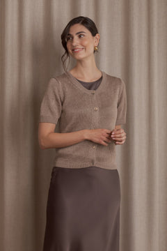 Lyhythihainen pellavasekoiteneuletakki, Greige