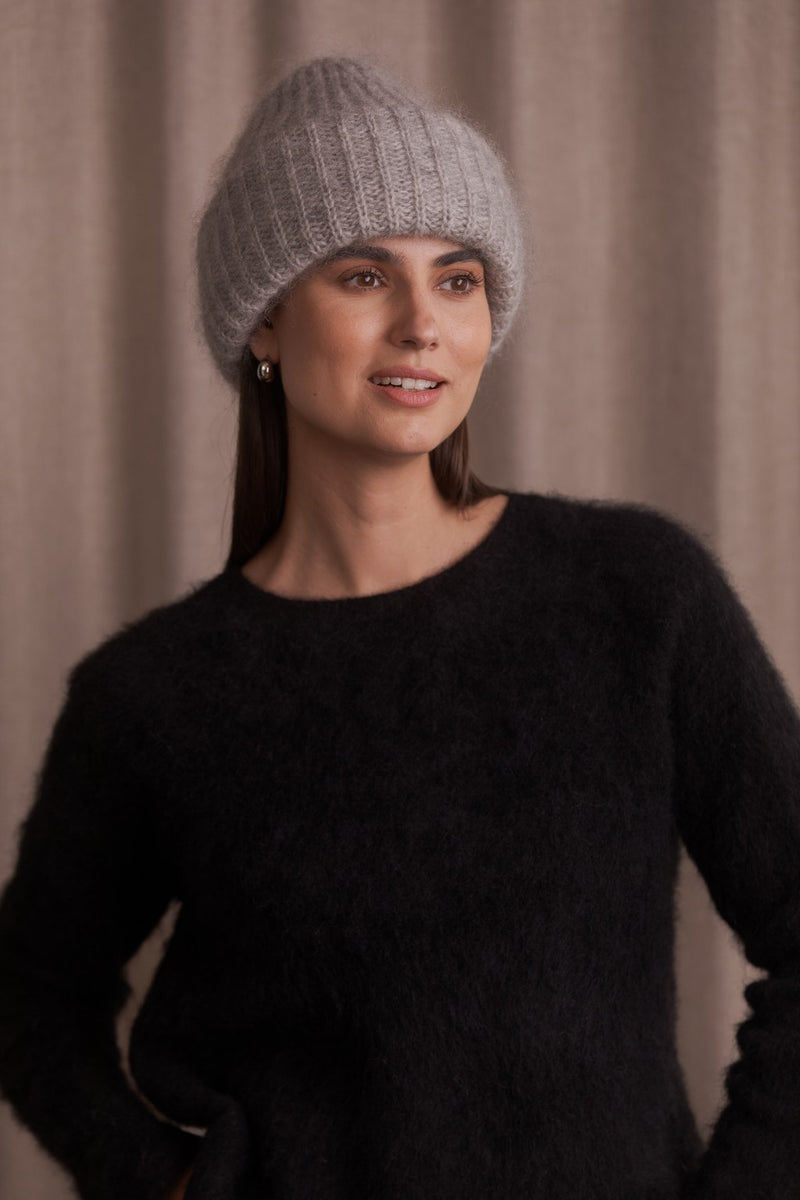 Italialaisesta langasta neulottu tyylikäs ja muhkea pipo suojaa tehokkaasti kylmältä säältä. Pipo on valmistettu pehmeän kid mohairin ja lämpimän villan yhdistelmästä, mikä tekee piposta pehmeän ja lämpimän.
