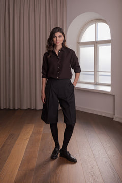 Ajaton Lilly-pellavakauluspaita, joka yhdistää rennon tyylikkyyden ja huolitellun viimeistelyn. Se on valmistettu 100 % eurooppalaisesta pellavasta, joka tuntuu miellyttävältä iholla ja hengittää luonnollisesti. Selkäpuolen laskos tuo ilmavuutta ja rentoutta paidan istuvuuteen. Helmiäisnapit antavat paidalle viimeistellyn ilmeen.