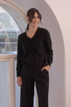 Pitkähihainen kashmirneule V-kaula-aukolla, Black