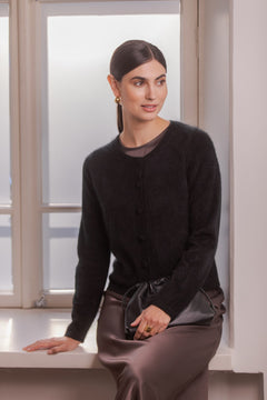 Katie-kashmirneuletakki on pehmeä ja huoliteltu valinta, joka yhdistää klassisen ilmeen ja rennon käyttömukavuuden. Etureunaa koristavat kuusi kangaspäällysteistä nappia, jotka tuovat neuletakkiin kauniin yhtenäisen viimeistelyn. Istutettu hihalinja luo ryhdikkään ja jakkumaisen siluetin, kun taas kapeat neuloskäännökset hihansuissa ja helmassa lisäävät siroa keveyttä. Avara pyöreä kaula-aukko laskeutuu luonnollisesti ja korostaa kauniisti kaulaa ja hartialinjaa. Valmistettu 100% kashmirista, neuletakki on ajaton ja monikäyttöinen, täydellinen kerrospukeutumiseen ympäri vuoden.