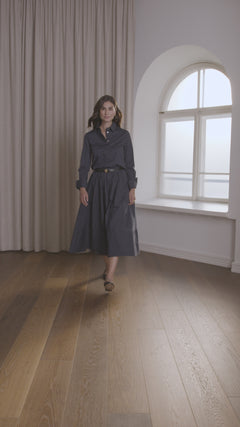 Camilla-paitapusero on valmistettu laadukkaasta eurooppalaisesta puuvillasta, johon lisätty elastaani tuo vaatteen käyttöön joustavuutta ja mukavuutta. Regular-mitoitus ja istutettu hartialinja luovat ryhdikkään siluetin, jota täydentävät huolellisesti suunnitellut rintalaskokset. Tyylikäs piilonappilista, leveät käännettävät hihansuut ja mattapintainen kangas viimeistelevät kauluspaidan huolitellun ilmeen.