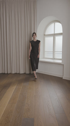 Vartalonmyötäinen Tine-satiinimekko, joka yhdistää ajattoman kauneuden ja käytännölliset yksityiskohdat. Holkkihihat ja pyöreä pääntie luovat siistin ja pelkistetyn ilmeen, jota korostaa selän nappikiinnitys. Midipituinen helma tekee mekosta monikäyttöisen ja tyylikkään valinnan sekä juhlaan että eleganttiin arkeen. Sivuvetoketju helpottaa pukemista ja varmistaa istuvuuden.